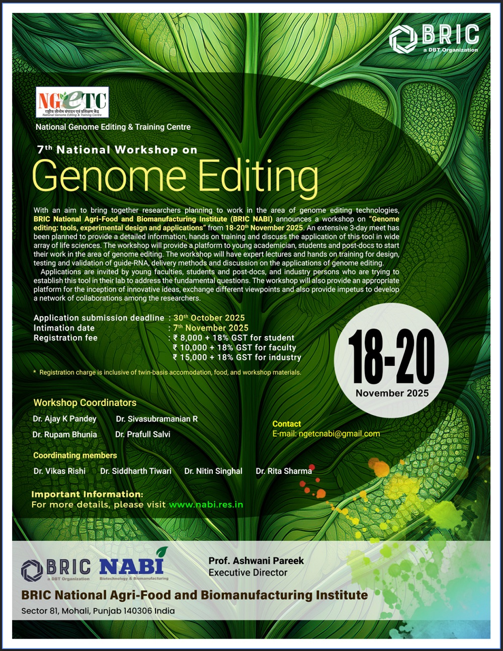 7th National Workshop on Genome editing Tools, experimental design and its applications